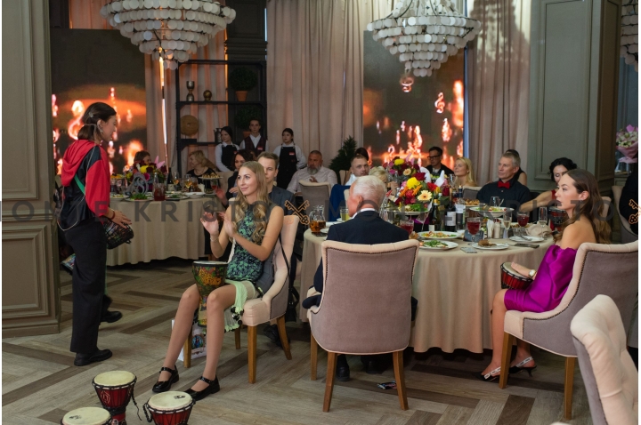 А дальше гостей ждал настоящий взрыв эмоций! Завораживающее барабанное шоу «Барабаны мира» переросло в масштабный мастер-класс, где все 60 гостей синхронно играли на барабанах — это было невероятно энергично и объединяюще!